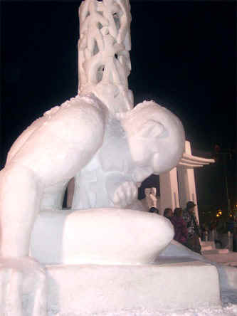 "The warm weather on Thursday made carving a challenge. We kept waiting for colder weather that never came. The crowds were very large for a Thursday and Traci and Randy Shorman enjoyed interacting with them and explaining our message. Everyone on the team is in great spirits. We went to bed dreaming of colder weather." - Randy Amys