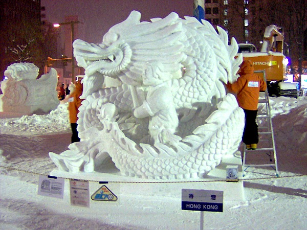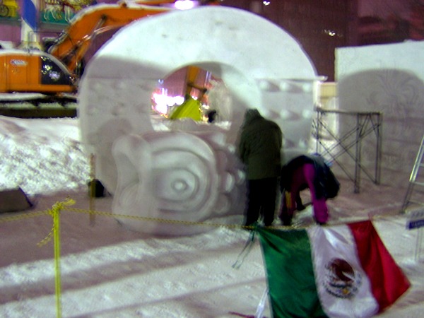 We had an opportunity to visit with some Navy personnel for a beer after we finished for the day. They are stationed here and on assignment to compete in the local snow sculpture event across the street. As always the competition in our event is going to be real stiff. Many details are already showing from the master carvers on the China, Hong Kong and Malaysia teams.