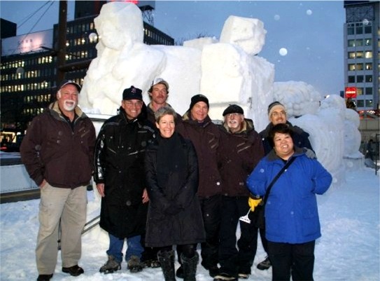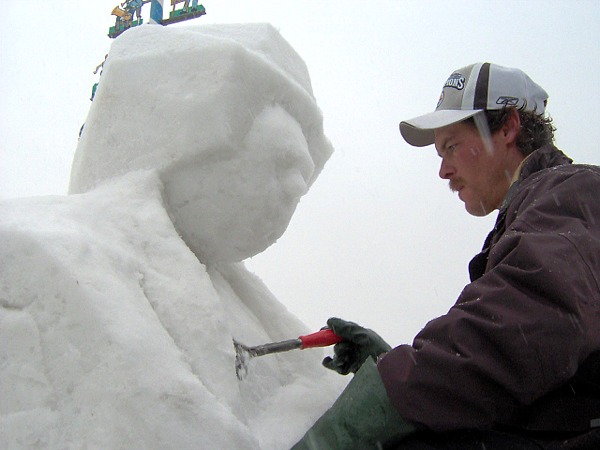 "Here it is! The day went well and we were able to fluff and buff most of the time. The sun did come out and did it's best to melt the south side. We are all happy with the piece and await the judging." - Randy