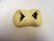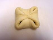 | Dust a clean, flat surface with flour. Take one piece of dough at a time and roll it out to about ¼ inch thick. Place 3 tablespoons of bean paste in the center of dough. Fold the sides of the dough up over the beans and pinch closed. Repeat 3 more times. | |