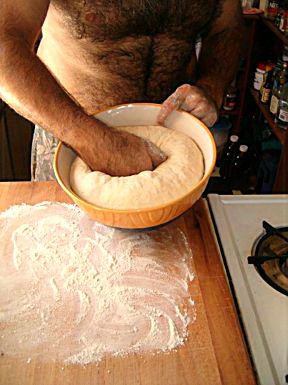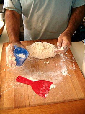 When dough willingly leaves the sides of the bowl, flour the board and scrape all the dough onto it. | ![]() |
