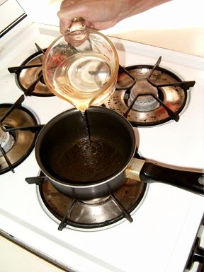 Remove the water from the heat and test for temperature. It should be at about 85 degrees and feel uncomfortably warm, not hot or scalding to your finger. If it is too hot, give it a few minutes to cool down. You can add some cold water but don't use all of the water if you do unless you are prepared to make a bigger batch of bread. | |