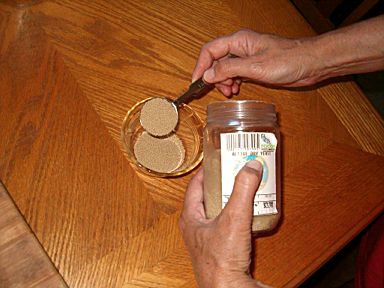 | 1 | Measure 2 tablespoons of yeast into the small pyrex dish. |