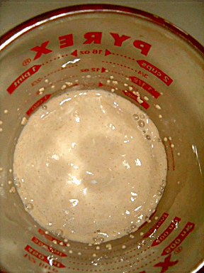 Pour the yeast mixture into the flour and rinse out the yeast cup into the flour with the remaining warm water. | ![]() |