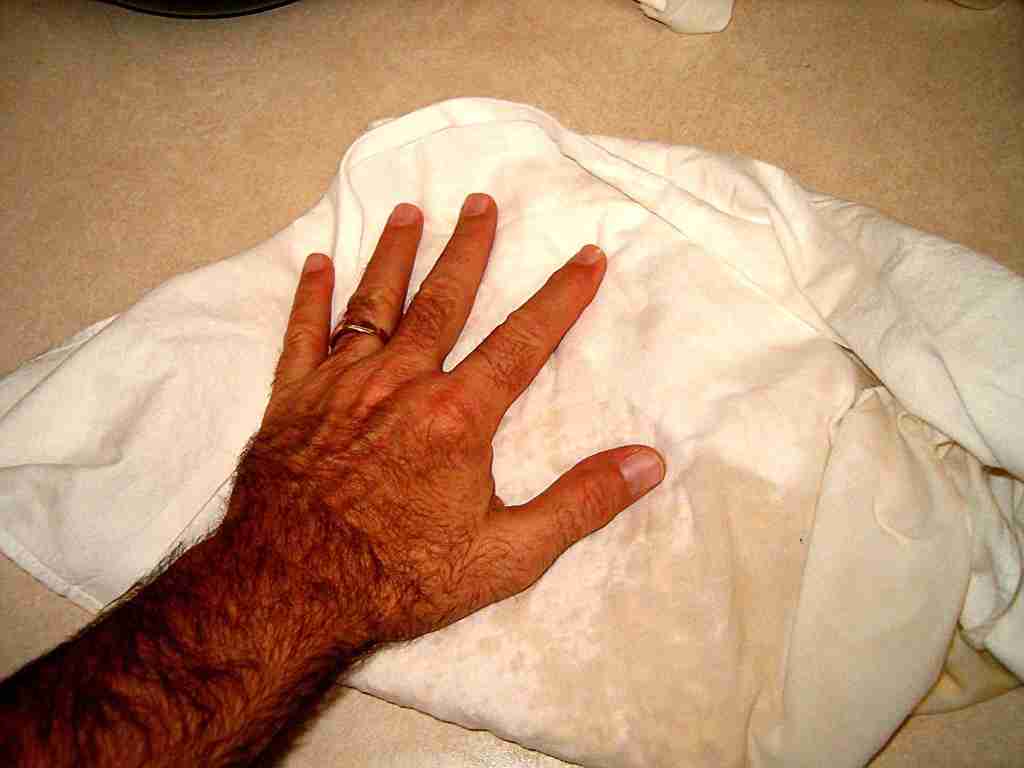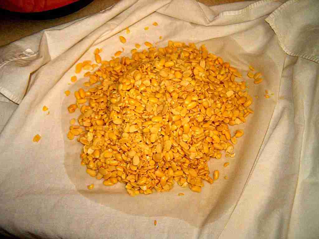 The de-hulled beans are now ready for drying. Put the drained beans in a clean lint free towel and dry them until they are "surface dry." |