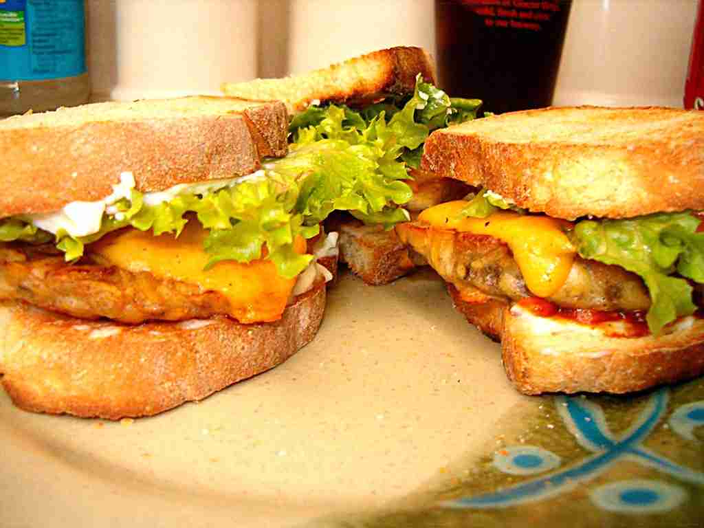 melted on top, on toasted homemade bread, BBQ sauce and some fresh