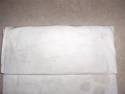 | Fold the towel over the tofu. | Fold again to complete the wrap. |
