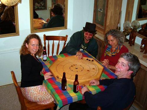 Tami and Carol took on Lyle and Glen at the Crokinole table.