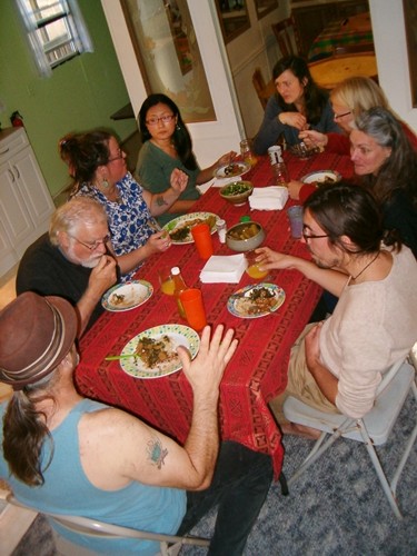Before we knew it, the house was full of happy people getting lucky! Sharing the stories, luck and beans are Dave, Joe, Lisa, Haruka, Mary Bee, Jason, Camille and Andrew.