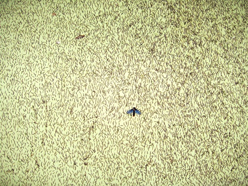 During the day dragon flies mined the sky and lake for edibles. In the evening, thousands of flying insects gathered beneath the light on the wall. We were, of course fascinated by them, a humming collage of winged insects. If we took a finger and wiped them off the wall, we were able to create white spaces between the vibrating bodies. If we stood close, our arms began to tingle with the vibration of their tiny wings.