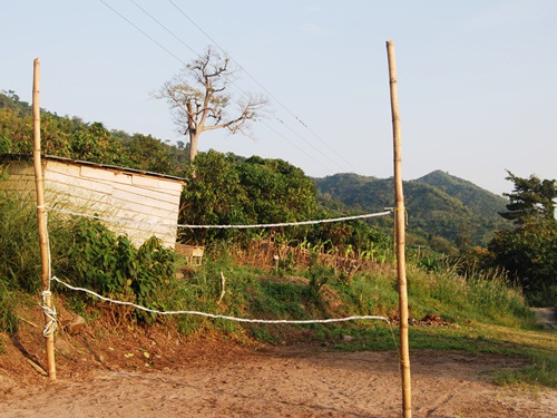 Bamboo fence and volleyball net. Phone (MTN) and internet reception (Vodaphone) were spotty to nil but we found that if we stood near the shed on the high side of the road we got three bars on our cell phones.