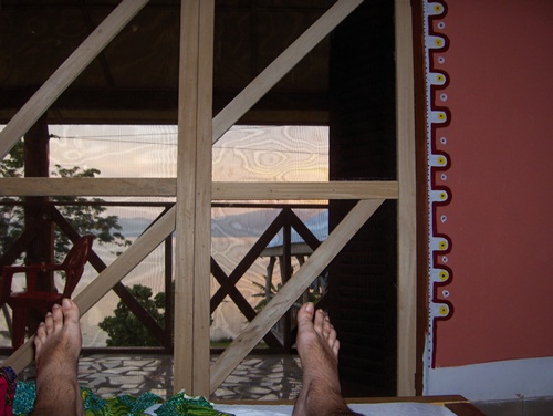 By dinner time the three of us were wearing the masks constantly and still suffering with headaches. Bob kept his eye on the news and soon learned that the spilled chemical, Dimethoate was capable of  causing permanent nerve damage. That was all it took to put us into self-imposed evacuation mode. Bob booked us a couple of rooms at Cocoa Village and called on Eric to drive us to Lake Bosumtwi.