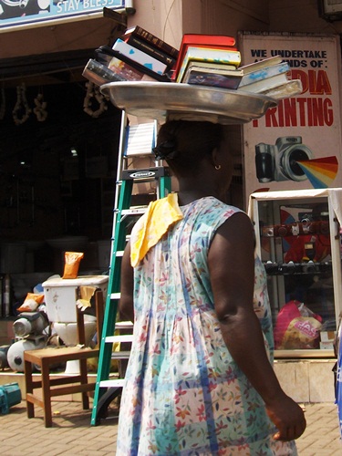 While it is common here, it would be uncommon in the States to see a woman carrying a pan of books on her head or corn stalks growing like weeds on the busy downtown streets of a city of two million people.