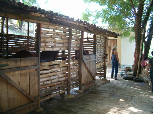 Bliss is sitting astride an animal in a beautiful place with good company. We posed for a photo with a giant Ceiba pentandra a.k.a. Kapok or Silk Cotton tree in the distance behind us. The Ceiba can reach 200 feet in height and the wood is well suited for making dugout canoes and coffins. The cotton is used to stuff life preservers and bedding.