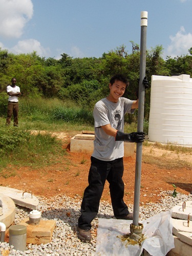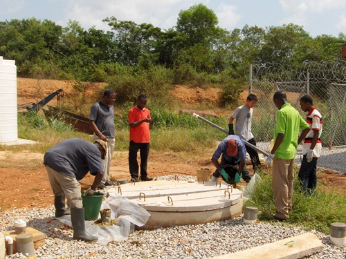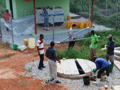 Our Fermentation Team hired a truck to bring the 3,000 liters of rumen from the abattoir to our plant at Dompoase. It had to be hand loaded into the digester since it is too thick to pump. Four men with buckets worked for four hours.