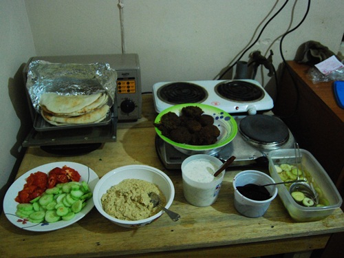 We began the month with a challenge, collaboration, support from the States and a happy, delicious outcome. Our challenge was Falafel and after watching the first patty disintegrate in the pan, Bob called Angelina’s Kitchen for help. The secret was two-fold. Add flour and let the bean mixture chill before adding baking soda and powder and frying in hot oil. We served the crispy little nuggets on Lebanese bread with fresh tomatoes and cucumbers, hummus, tzatziki, pickled beets and marinated cucumbers. It was very good. So good that we ate it for dinner the next night. And lunches in between.