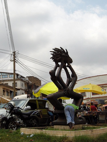 Another common sight is the image of a porcupine, seen in this roundabout sculpture. The porcupine is both the symbol of Asante nationalism in an emergent Ghana and the mascot for Kumasi’s beloved football (a.k.a. soccer) team, the Asante Kotoko. “Like the quills of the porcupine, if you kill a thousand, a thousand more will come.”—Asante aphorism