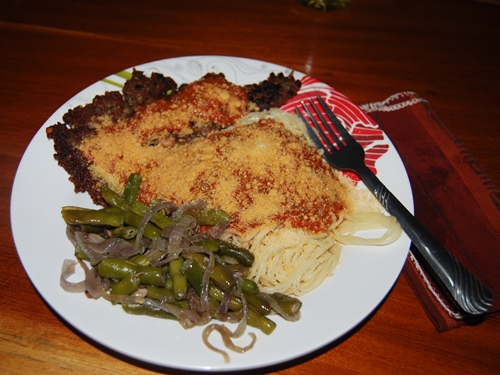 One of our favorite meals occurs nearly every Friday Night. It’s Italian, so we’ve dubbed Friday “Itey Night” as a nod to the movie “Breaking Away.” The October 26 version involved angel hair, marinara sauce, bean fritters and green beans with grilled onions topped with either nutritional yeast or Parmesan cheese.