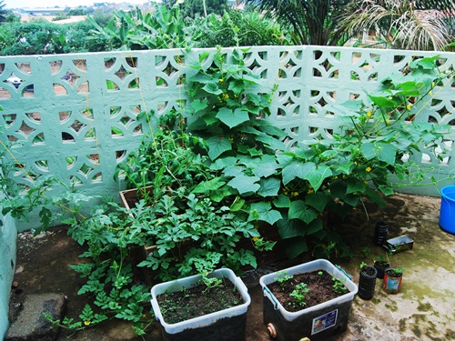 The back yard garden is flourishing thanks to Jeremy. He is in charge of construction and waters every morning as soon as the sun is up unless there was rain overnight.