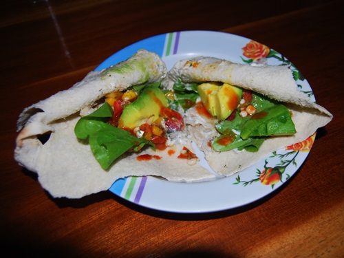 Bob’s falafel sandwich and a few nights later, his version of a fish taco. Bottom line: We aren’t hurting for groceries. Fresh produce rocks. And cooking and eating together builds strong bonds.