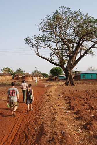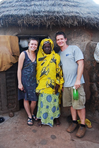 Compounds provide security for the family. They are built by adding a square hut for the man, and a round room for his wife. They are added onto as a family grows. They are cool inside and have some cool people living in them. Here’s Amy and Jeremy with the Spinner lady who wanted us to have a picture with her outside her front door. Spending half an hour in her hut was *very* cool.