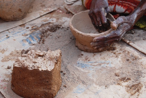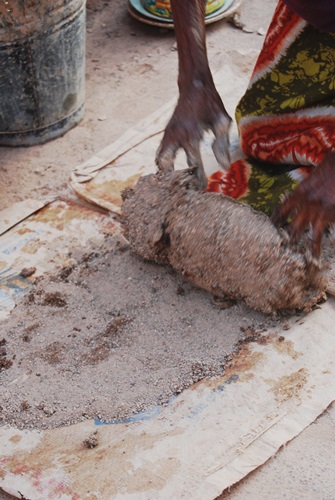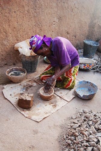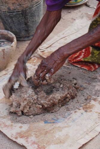 Our next stop was at a lady who made pottery. Again, our guide Abu translated for us and gave us details of the processes and uses of the vessels. The Potter mixed water with clay she had dug near the village, as well as some crushed up broken pottery for strength.