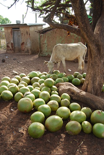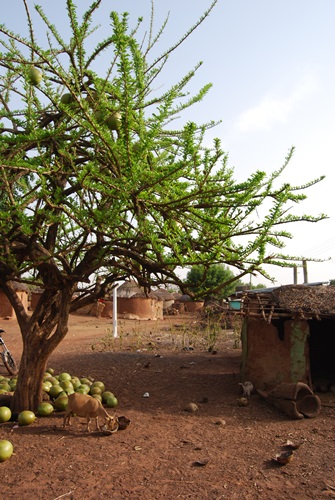 In the center of the village stands a calabash tree (Crescentia cujete) useful for so many purposes – bowls, animal fodder, and medicine.