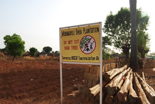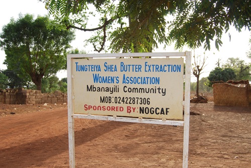 Two different technologies – the nicely built and painted shea nut processing facility and the easily procured and erected traditional tree enclosure (?)