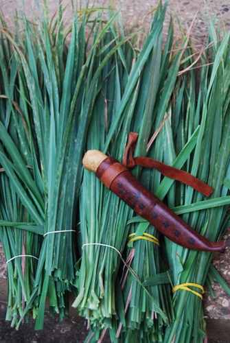 Using her trusty knife, she cut bundles which we hung from the outdoor laundry line to dry. When the grass had dried, Amy cut it up and spread it out to dry some more. We’ve been drinking lemon grass tea ever since.