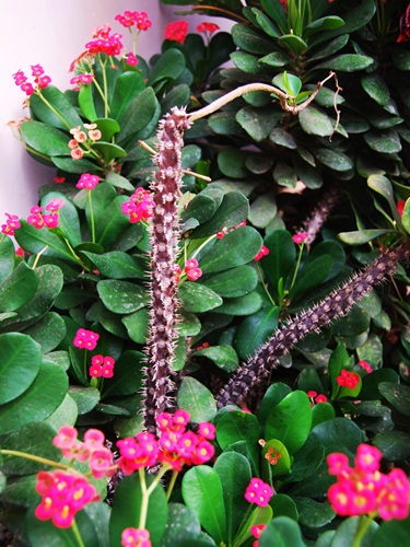 Camille loves the look of Croton and Osda House is surrounded with spectacular specimens. Behind Camille is a nice Cordyline or what we called Ti plants in Hawaii.