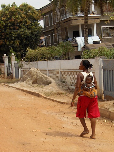 We have several schools in our neighborhood, including this one. During the week we can tell the time by listening to the children’s voices as we move about our day. We hear them gather in the school yard before class, the 10:00-10:30am crescendo of joyful play at recess, the 1:30 after-lunch recess and 3:00 end of the school day when uniformed youngsters spill back out into the streets. Mothers, fathers, uncles, brothers and sisters also fill the streets on their way to meet the younger children and walk them home. Mothers, aunties and older sisters tie a piece of cloth around their torso and wrap the children too young for school inside.