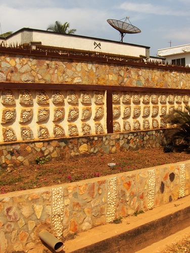 We were impressed by the pattern of shells used to decorate a this wall on the street behind our house.