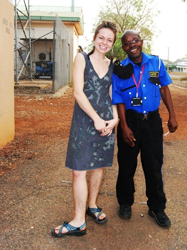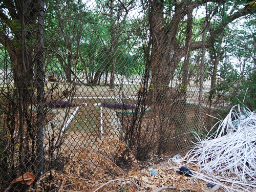 Five foot tall Amy towers over the security guard we met after parking near the VALCO school site. We then walked along the familiar sidewalks towards Bob’s friend Dee Simmons’ old house. You can tell we’re in the middle of the dry season by the color of the grass. The apartment in the back of the photo on the right is where Bob’s teacher Mrs. Conley lived. She is the teacher on the left in the photo above. Bob used to stay in her guest room occasionally and her steward made the best brownies that he always kept in stock.