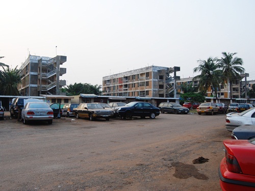 Here’s Bob in front of Dee’s house. Dee’s parents had six kids and so they bought a small “mammy lorry” when they came to Ghana in order to be able to haul them (and all their friends) around. Bob expected to see the green Datsun lorry in the drive when he walked up. On the right is the large college which now dominates the location of the old VALCO school, which a local told us still exists in the middle of the site although added onto considerably.