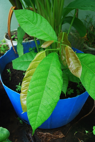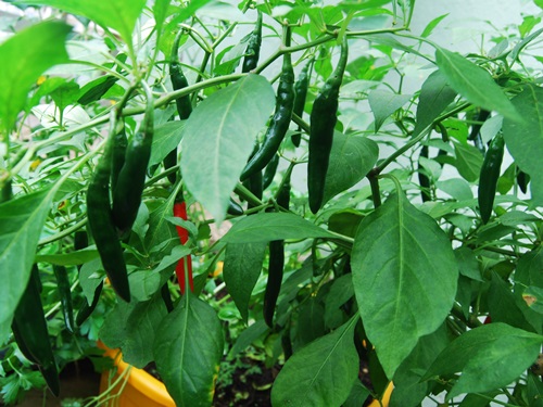 Here is the beginning of a cocoa tree from seed – just because, why not? And a happy and prolific chili pepper plant. One day, these two plants could make beautiful flavors together.