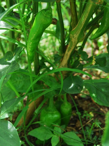 Eggplant, believe it or not. This is the local variety and sadly, we found it to be quite bitter, even after peeling and sweating with salt. Therefore, this is the last you’ll see of these prolific plants. They’ve been removed to make room for peppers and long purple eggplant