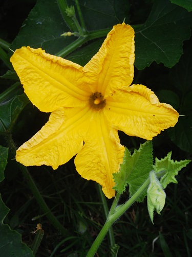 Out of the old compost pile grew a squash plant and on that plant blossomed five inch blooms and twining tendrils.