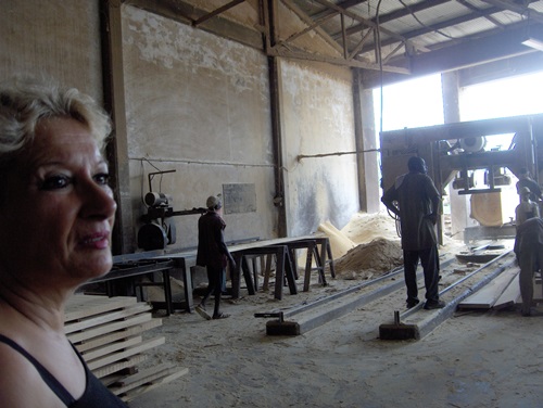 Elvira calls to us to witness the front end of Italo’s business. Sawdust flew as a giant saw sheared planks from a huge log.